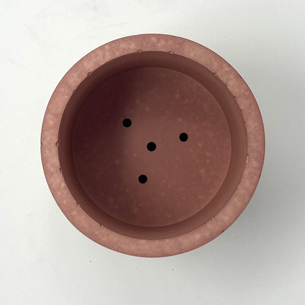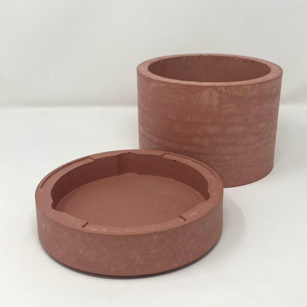 This concrete plant pot is designed in 2 parts. The top, a sturdy surround with holes in its base to allow free drainage into the separate drip-plate below. The drip-plate sits on top of a cork base to protect surfaces and add stability.